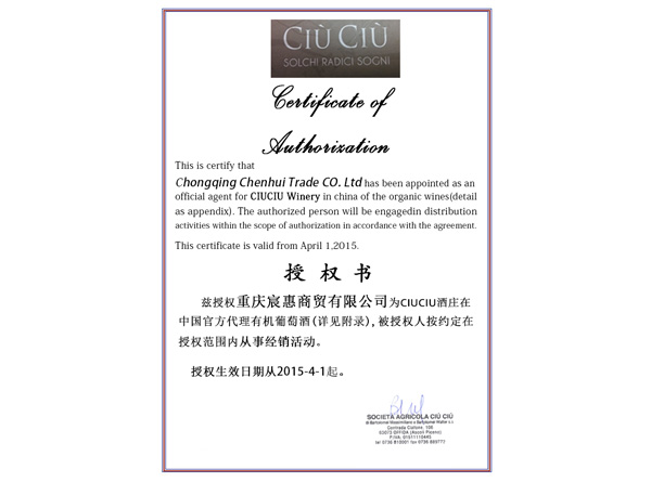 重慶市宸惠商貿(mào)有限公司是一家經(jīng)營有機(jī)商品的進(jìn)口商, 公司致力于為廣大中國消費(fèi)者提供高品質(zhì)高性價(jià)比的葡萄酒,是全國第一批酒莊莊主